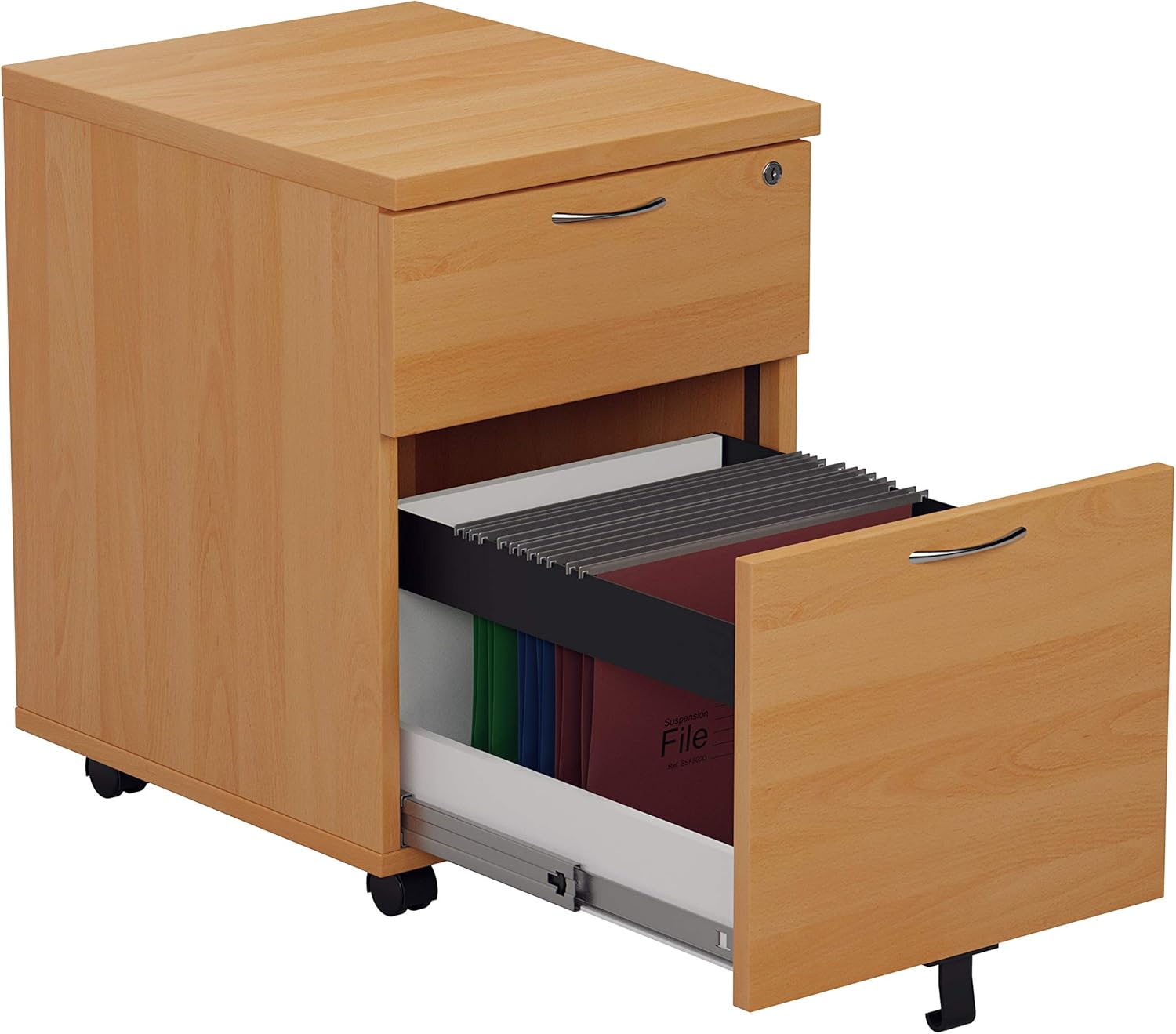 Office Hippo Heavy Duty 2 Drawer Mobile Pedestal Filing Cabinet with Anti-Tilt Mechanism & Lockable Office Storage, 5 Year Warranty - Beech