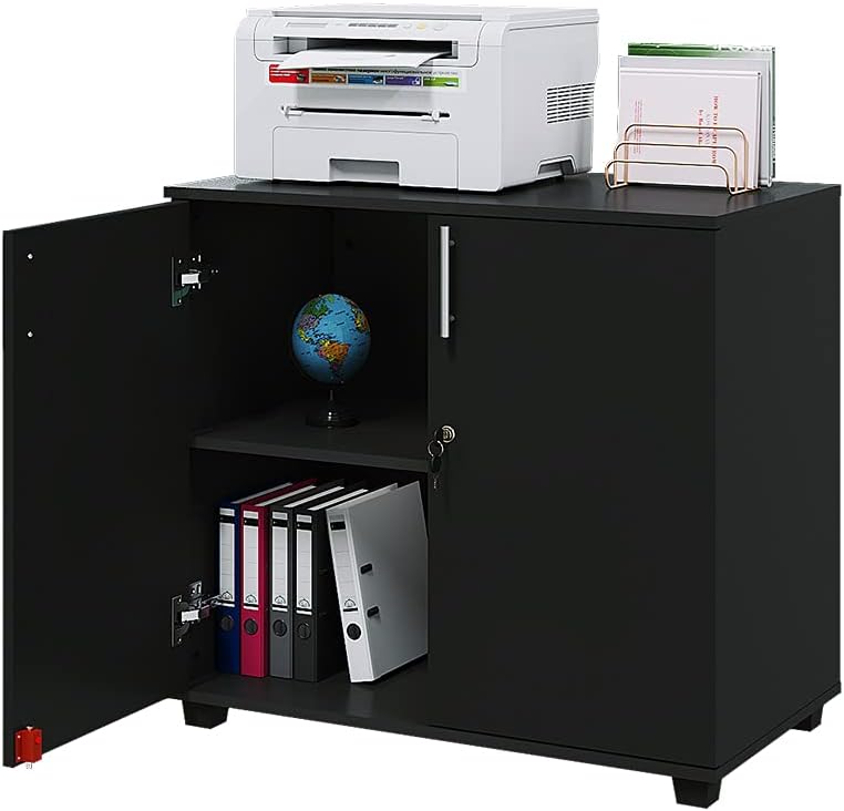 Panana 2 Door Wood File Cabinet With Lock, Office Storage Cupboard Lateral Filing Cabinet Organizer For Home Office (Black)