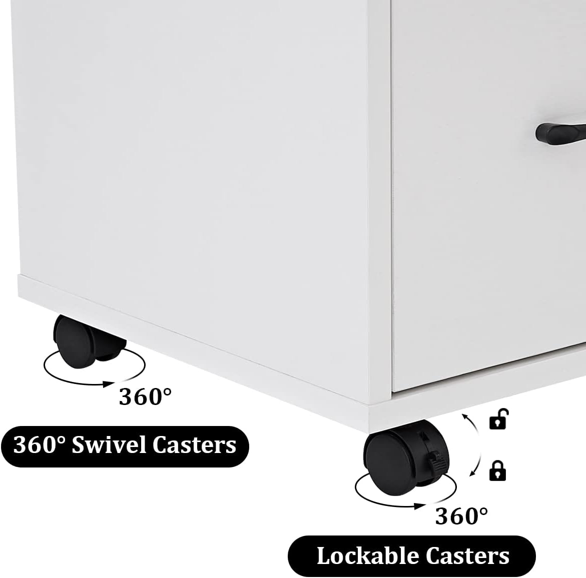 - ➤FREE MOVEMENT: Rolling On Four Wheels, This Printer Stand Can Be Moved And Adjusted In Position Freely. Built-In Brakes On Front Two Casters To Keep It In Position And Add Stability. The Maximum Load Of This File Cabinet: 150 Pounds.