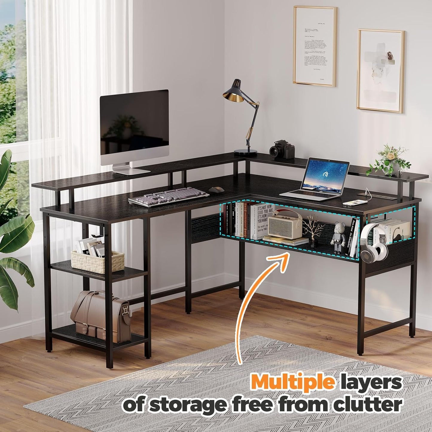 • 【Spacious Working Area】This L shaped corner desk includes 2 spacious desktops that provide plenty space for your home office. 18.9"(D) x 59.4"(W) x 47.6"(W) wide desktop provides ample space for 2-4 monitors. The detachable full monitor stand reserves more space for your desktop, which greatly improves the utilization rate of the desktop. If you need a larger office area, you can combine two L-shaped desks into a large desk.