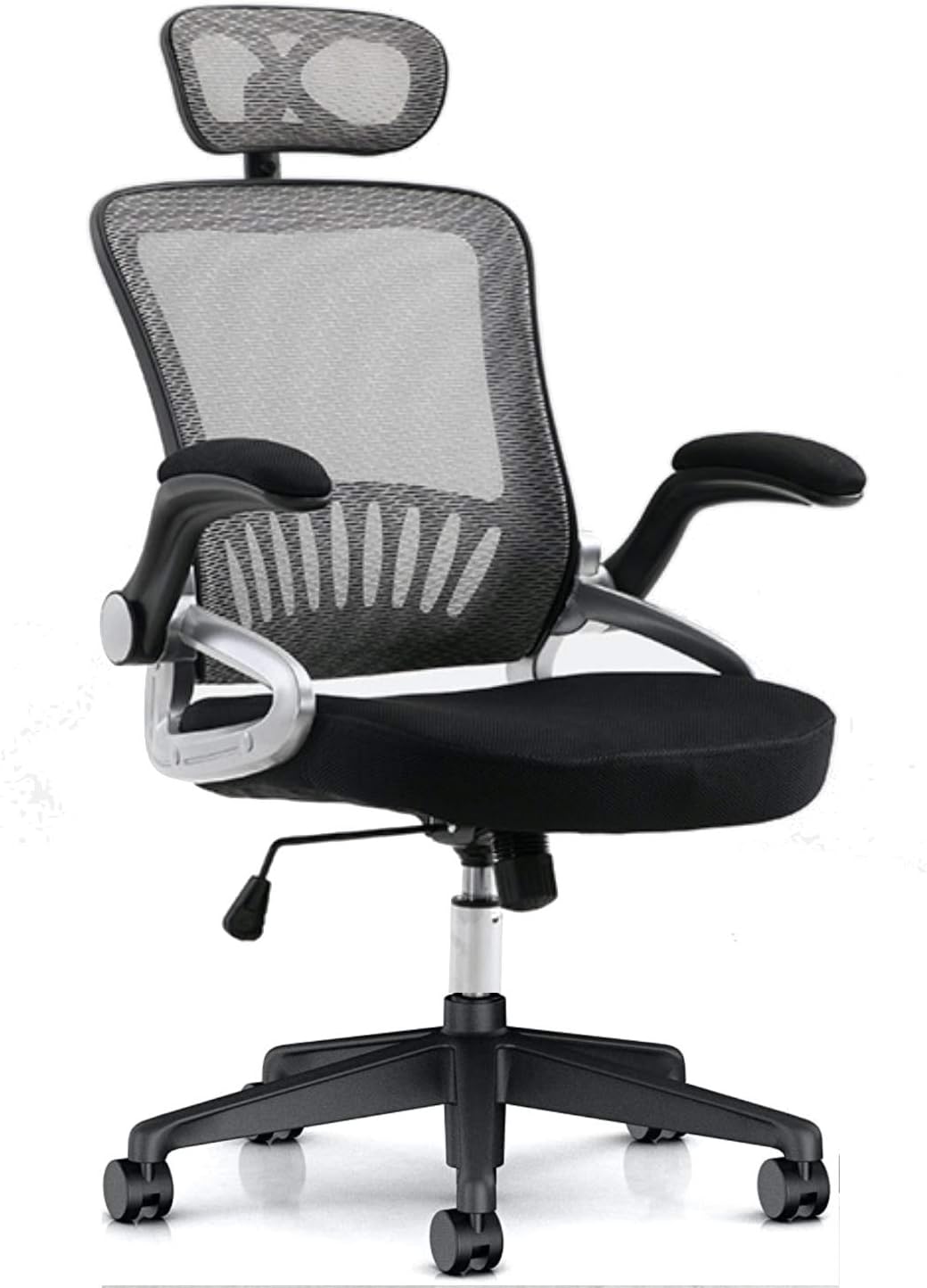 YALLA OFFICE Ergonomic Office Chair Ergonomic Mesh with Wheels, Lumbar Back Support, Adjustable Headrest with Flip-up Armrest (Grey(Nylon Base)), 901-GRY-NFR