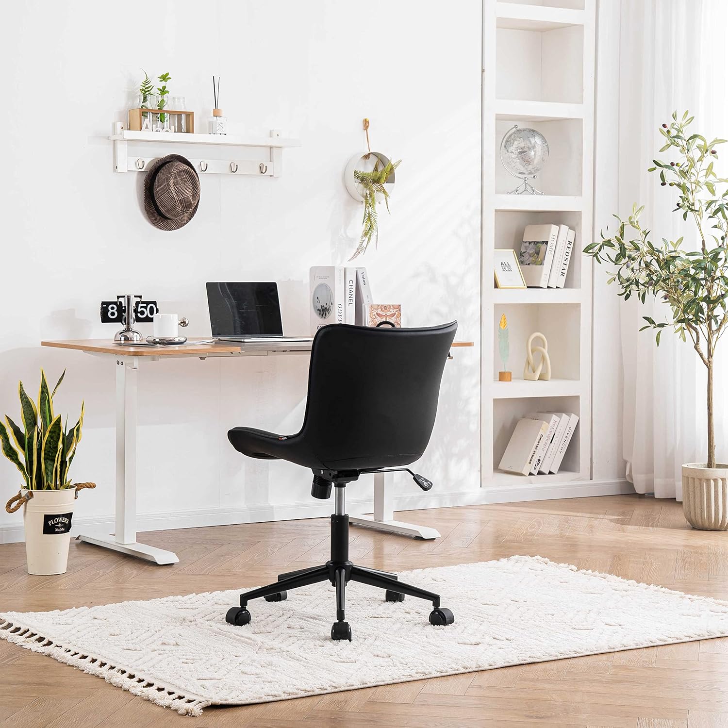 YOUNIKE Modern Black Office Chair, Ergonomic High Back Swivel Task Chair with Height Adjustment, Faux Leather, 300 lbs Capacity